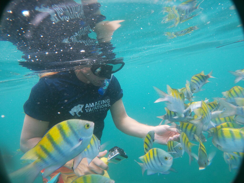 For the adventurous souls, Playa Biesanz awaits. Nestled in a small bay surrounded by jungle-covered hills, this beach offers excellent snorkeling opportunities due to its calm and clear waters. Explore the underwater world and witness colorful marine life as you glide through the gentle waves.