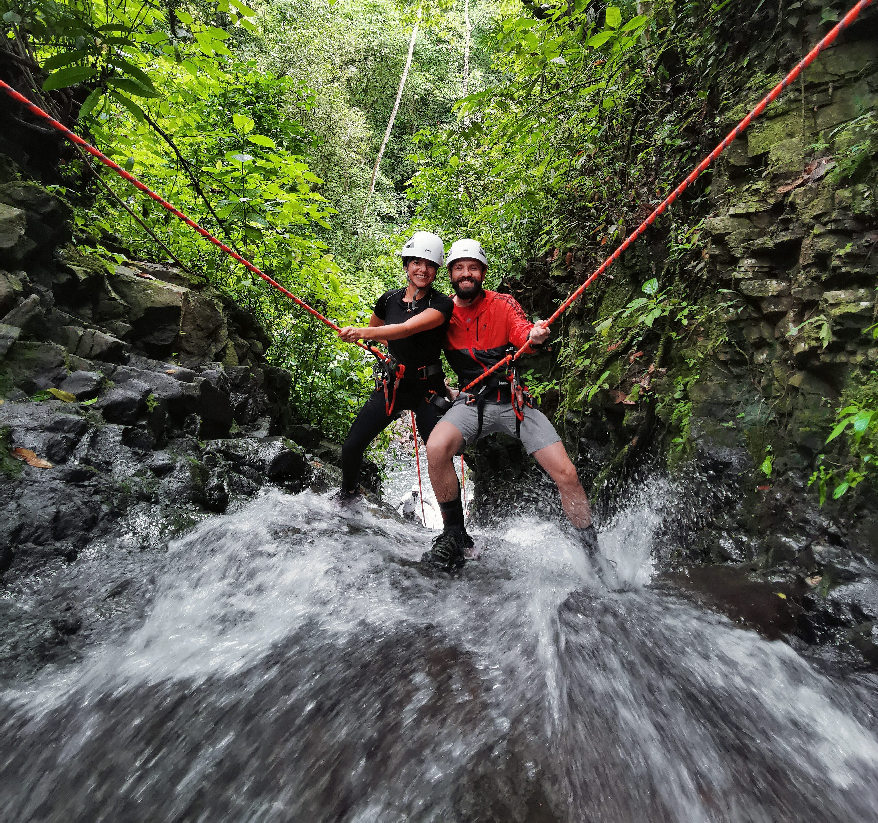 Jump, climb, and rappel through tropical waterfalls in a lush jungle setting.